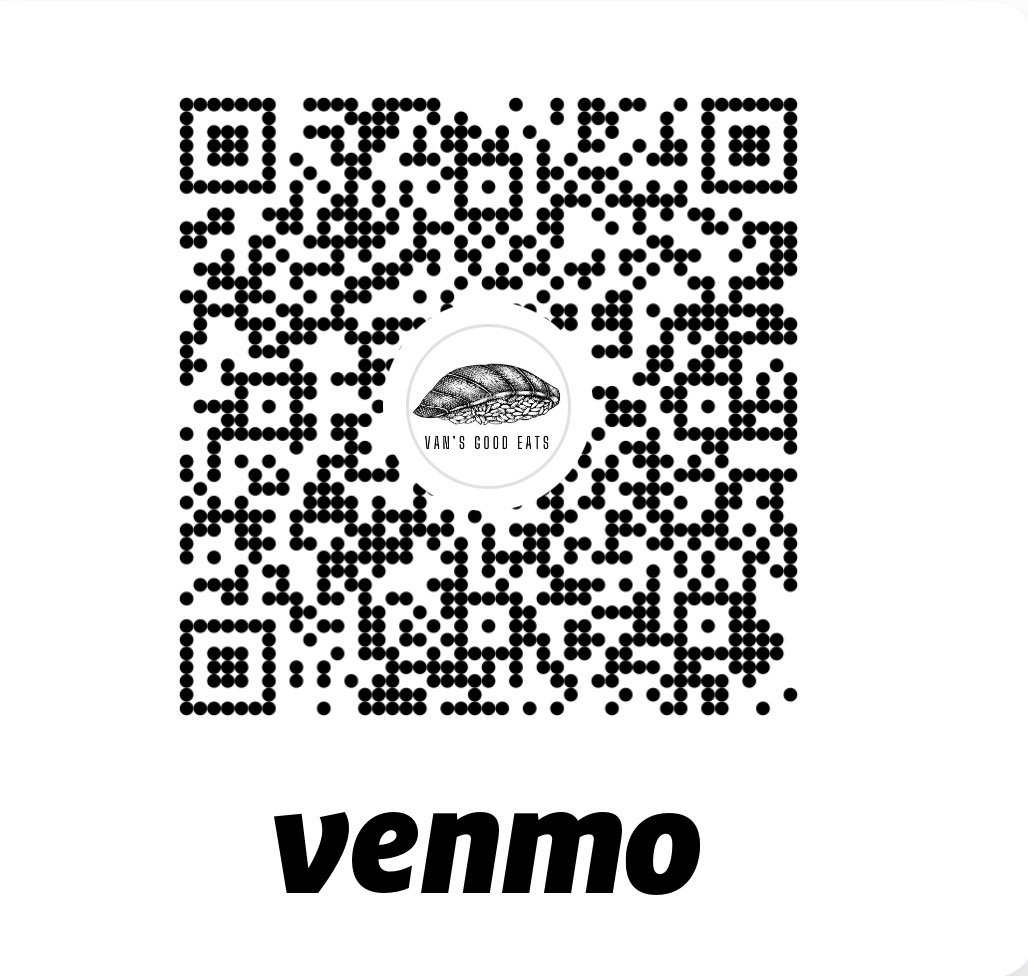 All pricing includes taxes. Secure by zelle/venmo/paypal @ vansgoodeats - ensure payment sent as family/friends**